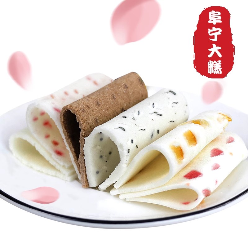 产品简介:阜宁大糕,又名玉带糕,阜宁地区传统糕类佳品。产于中国散文之乡--江苏省盐城市阜宁县,糕片白如雪,柔如云,甜如蜜卷得起、放得开,入口香甜、滋润细软、营养丰富、老幼皆宜。阜宁大糕十分美味,主要以糯米粉精制阜宁大糕,已有400多年历史,糕片白如雪,薄如纸(单片可点燃),甜如蜜,柔如云,上口香甜、滋润。主要以糯米粉精制而成,制作出白如雪、软如棉、薄如纸、甜如蜜的阜宁大糕。寓含着大吉大利、步步登高的祝福,深受人们喜爱。
